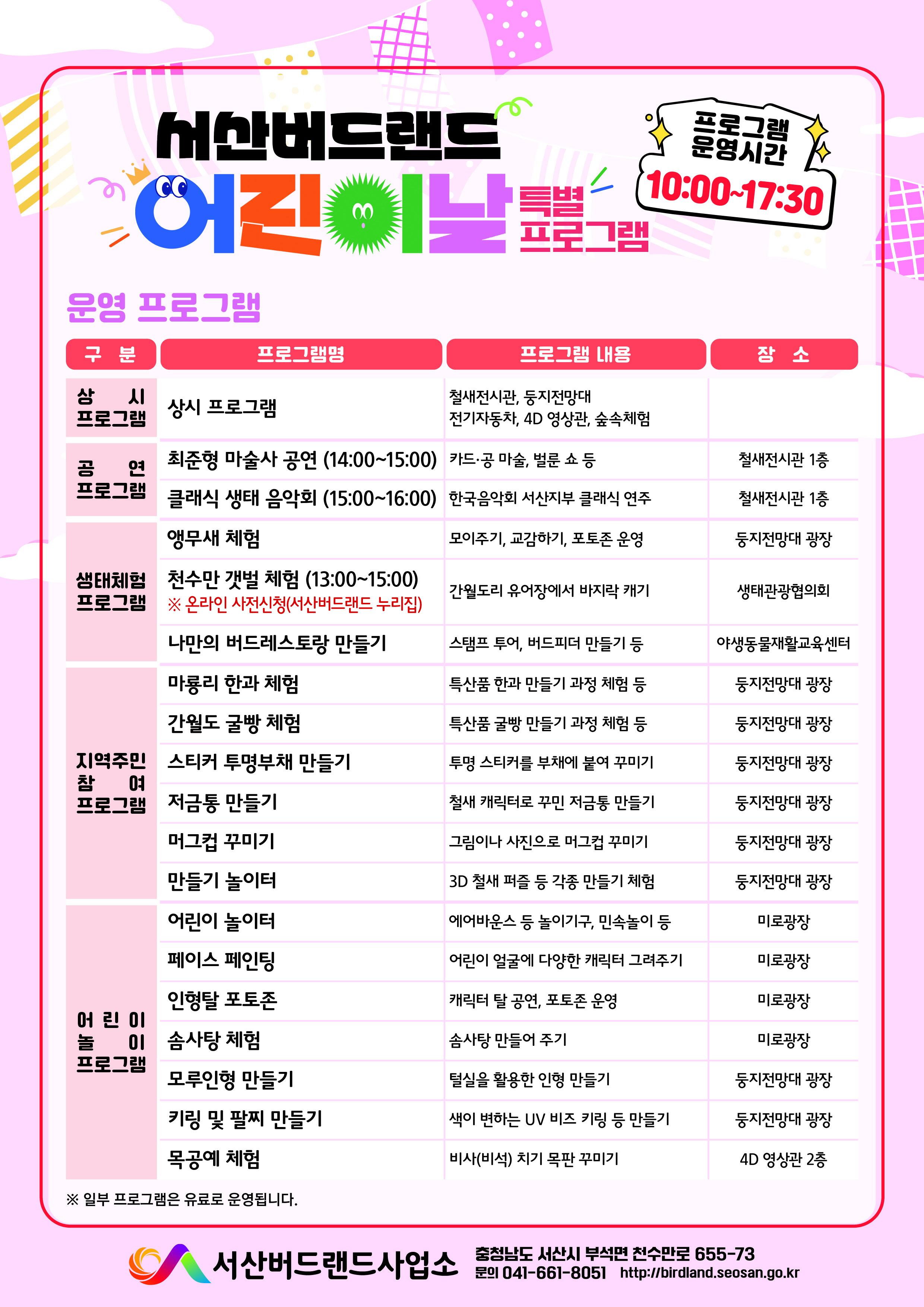 [2026] 서산버드랜드 어린이날 특별프로그램