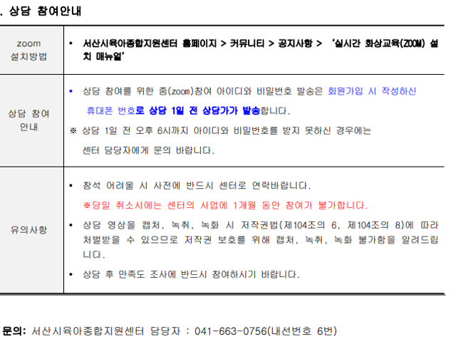 | 기타사항 | 1차 상담 : 8월 26일(금)15:00~15;50 2차 상담 : 9월 2일(금)15:00~15:50 |