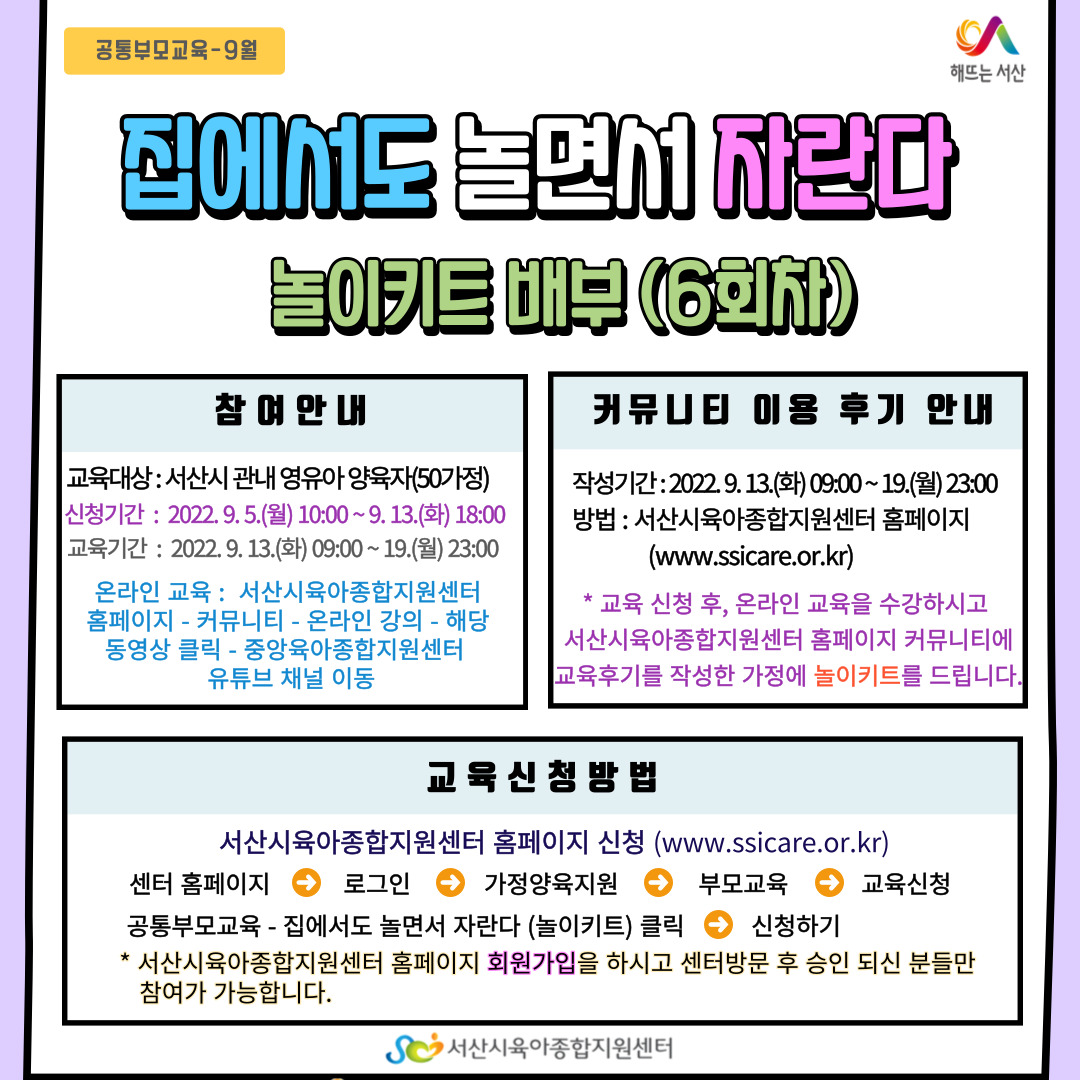 행복한 육아실현, 충남서산시육아종합지원센터가 함께 합니다!