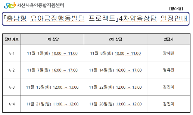 행복한 육아실현, 충남서산시육아종합지원센터가 함께 합니다!