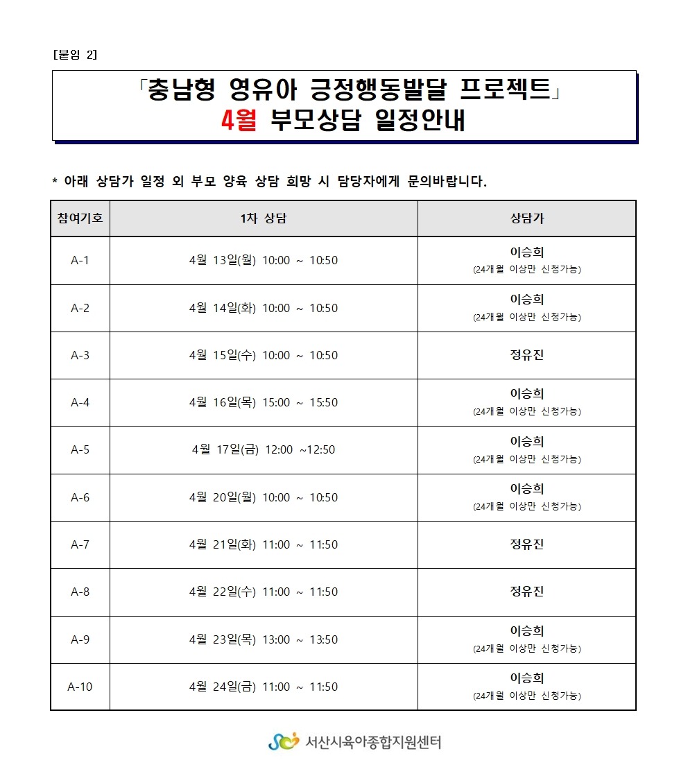 4월 부모 상담 일정 안내해드립니다.