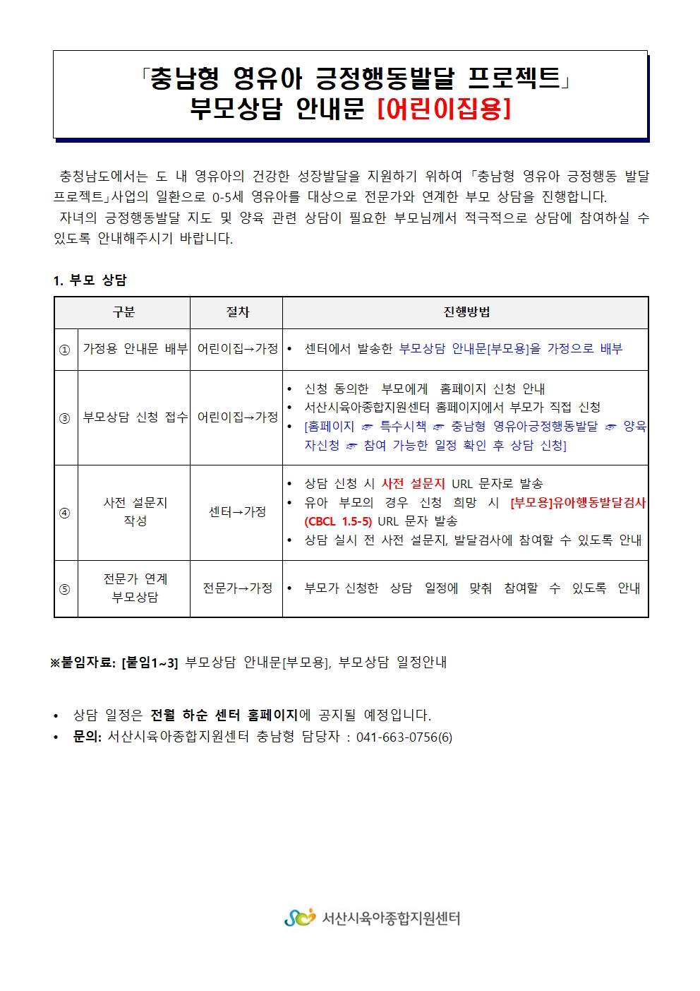 행복한 육아실현, 충남서산시육아종합지원센터가 함께 합니다!