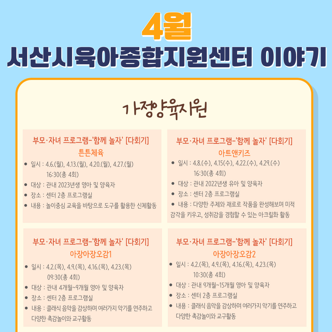 행복한 육아실현, 충남서산시육아종합지원센터가 함께 합니다!