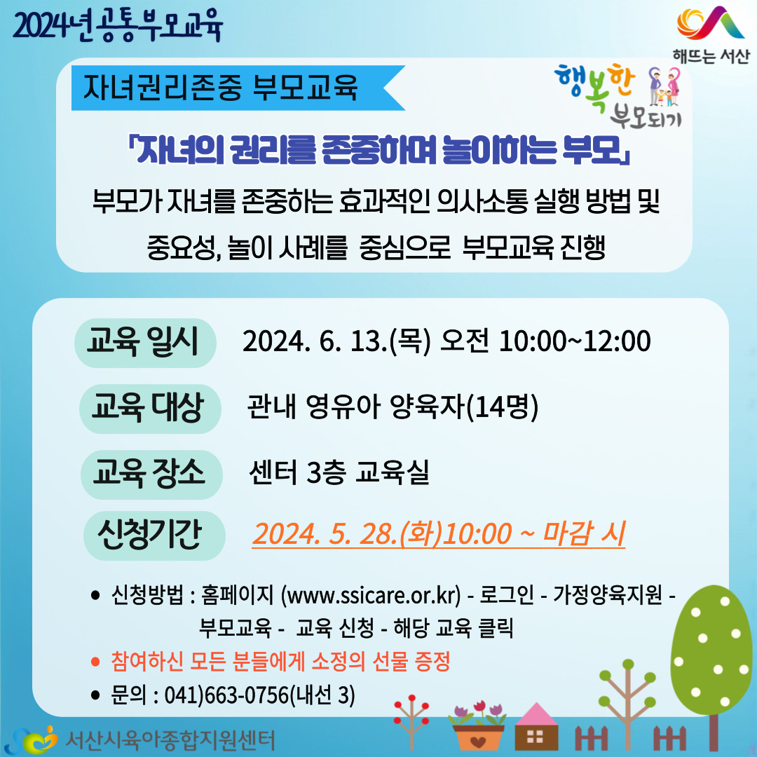 [2024년 공통 부모교육] 6월 자녀권리존중 부모교육(센터 진행)