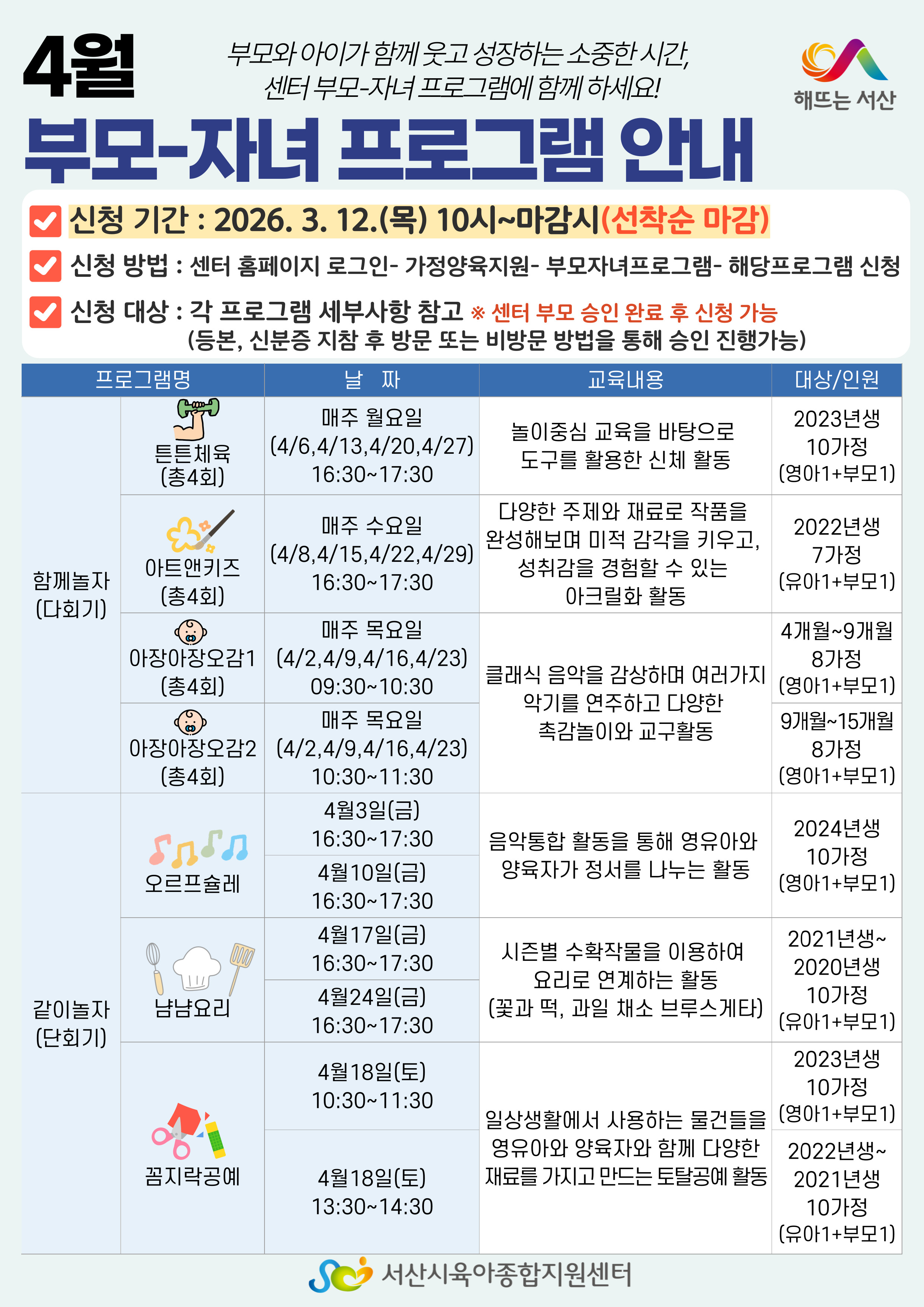 | 접수대상 | 부모 | 정원 | 10명 (신청: 0) |
